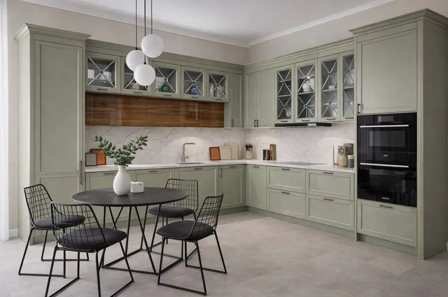 обеспечивает удобное размещение техники, гибкие модули хранения и логичную последовательность действий при приготовлении, сервировке и уборке, повышая комфорт и организацию пространства, экономя время и упрощая доступ к посуде и принадлежностям с удобными выдвижными ящиками и практичными полками для хранения.