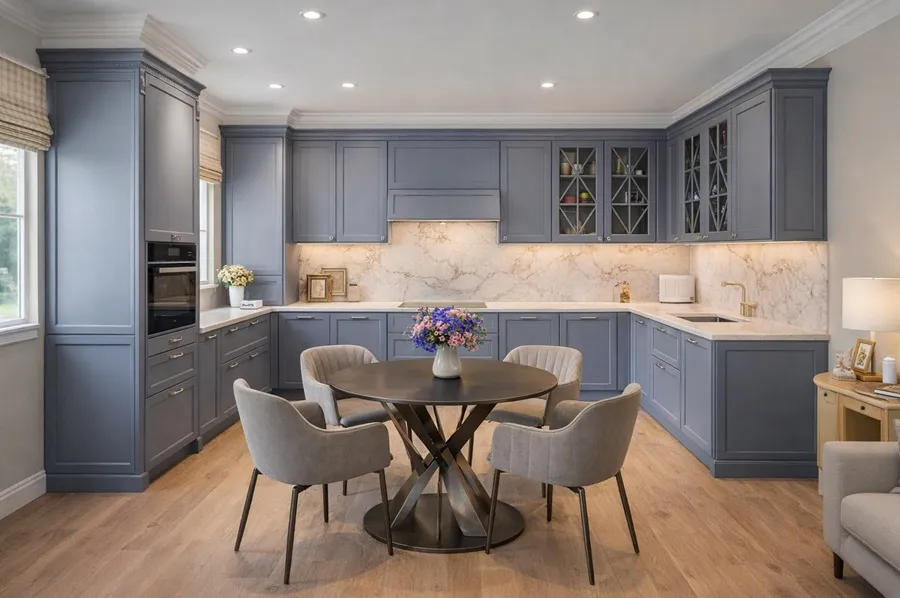 разместить технику, шкафы и столешницы так, чтобы процесс готовки был лёгким и приятным. Вместительность сочетается с продуманной эргономикой.