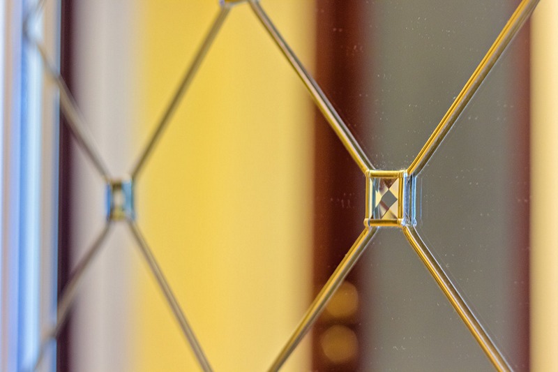 Зеркала оформлены витражами, выполненными по индивидуальному эскизу, и украшены хрустальными элементами.
