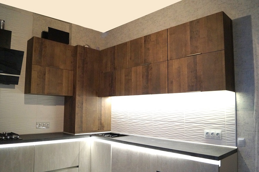 Если Вы в поисках большого гарнитура, который способен будет сохранить дополнительное место дляДизайнер Магия кухни обеденной зоны в Вашем кухонном помещении, то модель Касандра подойдет под Ваши потребности. Изделие характеризуется высоким уровнем вместимости и оригинальным фасадом, отлично подходящим под Г-образную планировку комнаты. Угловая кухня Касандра имеет большую общую столешницу и все необходимое для удобного пользования. А подсветка теплых тонов придаст Вашей кухне особого шарма.