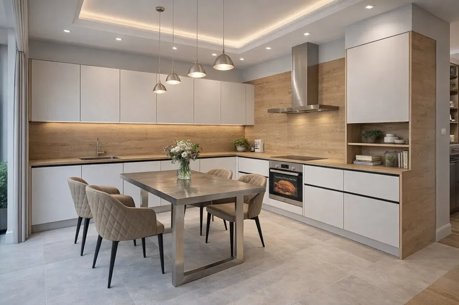 Угловая кухня позволяет рационально использовать угловые пространства, предлагая эффективный кухонный гарнитур с