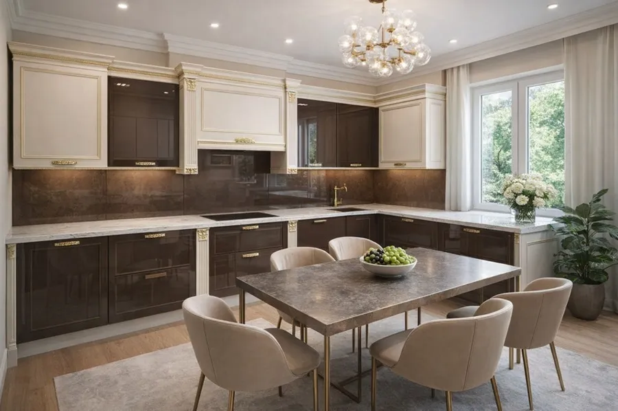 которые часто остаются незадействованными. Эргономичная планировка создаёт удобный рабочий треугольник, а продуманное расположение модулей обеспечивает лёгкий доступ ко всем зонам. Подходит для помещений разной площади и дарит комфорт в повседневной эксплуатации.